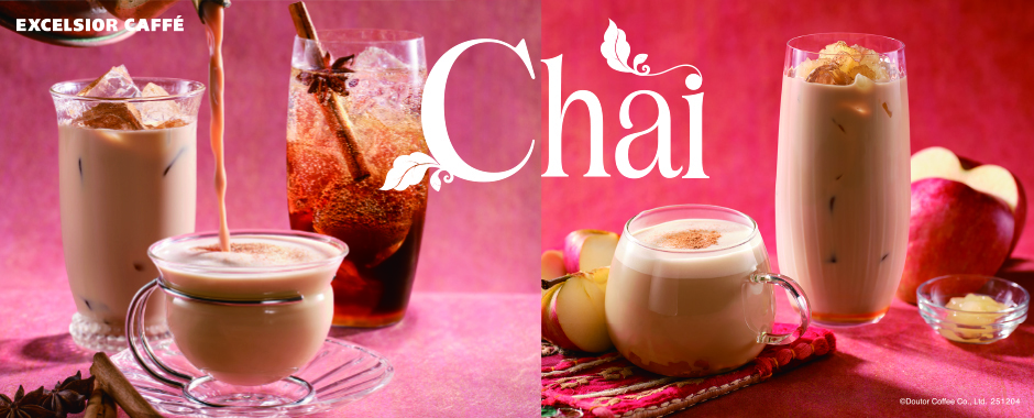 エクセルシオール カフェオリジナルの茶葉を使った「マサラチャイティー」「豆乳マサラチャイティー」が新登場。さらに、アレンジメニュー「アップルマサラチャイティー」と「マサラティーソーダ」も発売します。