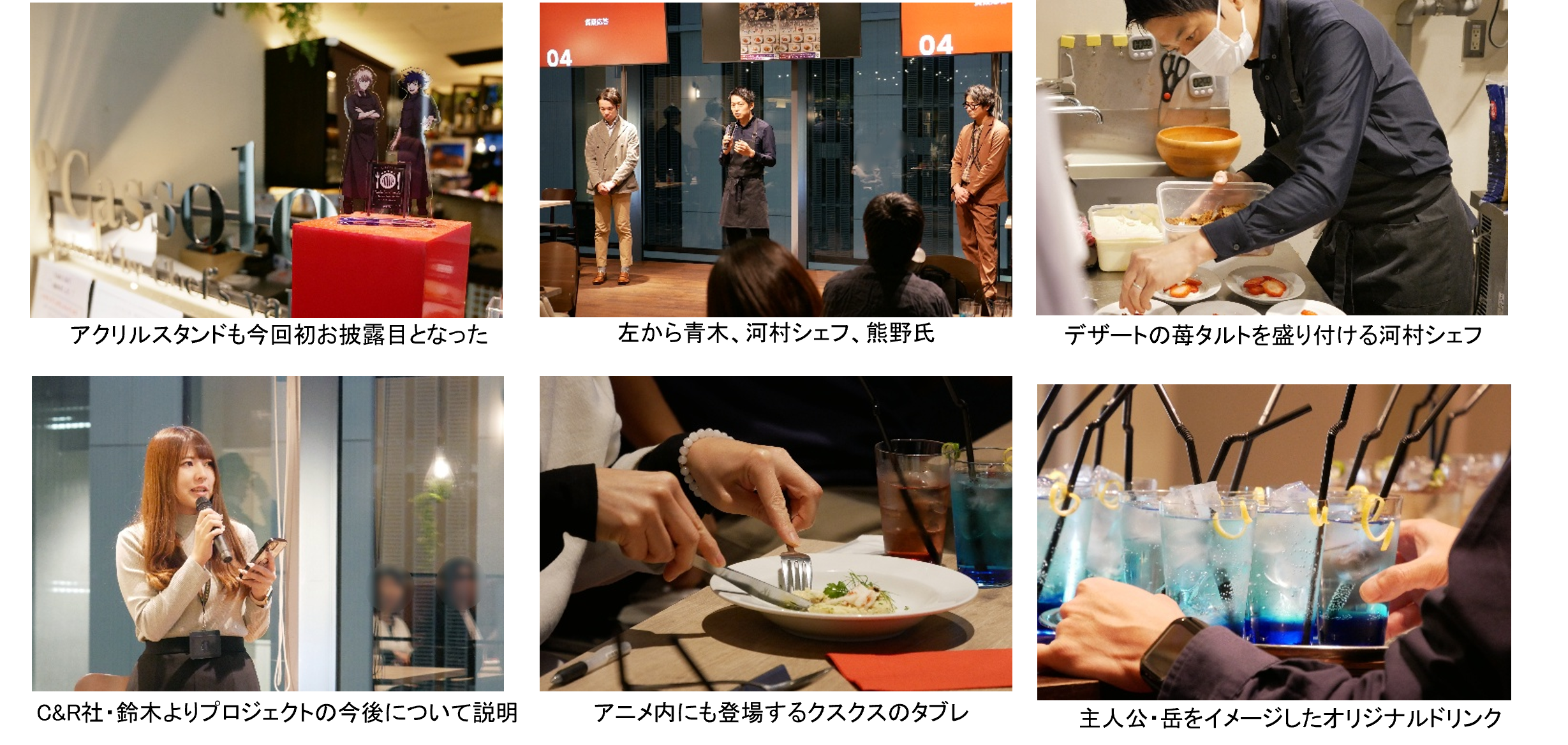 株式会社クリーク・アンド・リバー社(以下C&R社)の食分野の子会社・株式会社Chef's value (以下CV)は、人気アニメ「フェルマーの料理」とレストラン「Cassolo(カッソーロ)」(東京・新橋、運営:CV)との超本格コラボレストラン「“Gaku” in Cassolo – A Genius in the Kitchen」の開催(2026年4月・5月)に向けて、現在、クラウドファンディングを実施中です。 本コラボレストランの開催に先立ち、11月5日(水)にメディア関係者の皆さまに向けて試食会を実施いたしました。本試食会では、アニメの主人公・岳が考案した「三位一体コース」*をご試食いただいたほか、食事との相乗効果を生みだすオリジナルドリンク(ノンアルコール全4種)もご試飲いただきました。なお、本試食会の体験レポート全文は「CAMPFIRE(キャンプファイヤー)」でお読みいただけます。