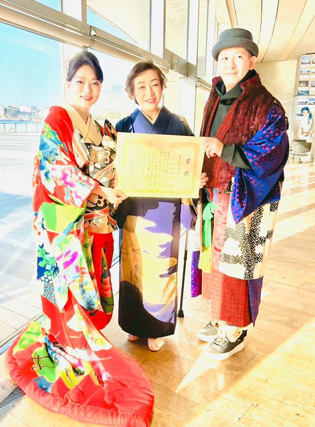 浅草の杖の一人製造業Ribalon(本社:台東区今戸、代表:鳥喰唯志)は、令和7年11月15日、長崎県の長崎港・松ヶ枝国際ターミナルで行われた、国際文化きものショーに出演した堀越信繫さんをRibalon canesでサポートいたしました。堀越さんはコンテストで、チームでの「審査員特別賞」と個人で「ベストスマイル賞」をW受賞。青森県南部地方に伝わる南部列織り帯と共に堀越さんの受賞をサポートしました。