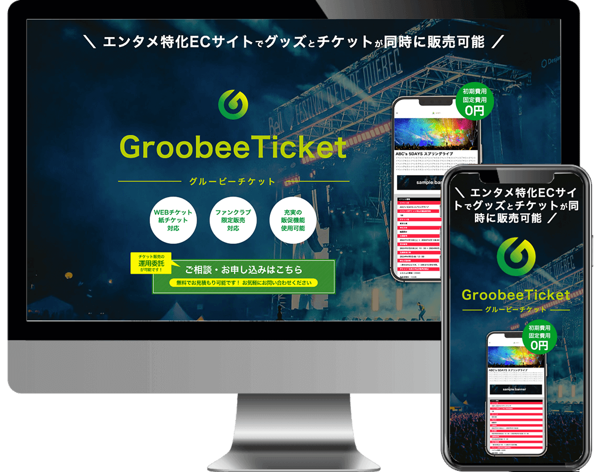 Groobee(https://groobee.com)はアーティスト・アニメやキャラクターなどのコンテンツに特化した、エンターテインメントに最適な機能が詰まった初期費用0円からスタートできるECサイト構築サービスです。サイト上のクリエイティブ、CS対応から物流対応までGroobeeがサポートいたします。