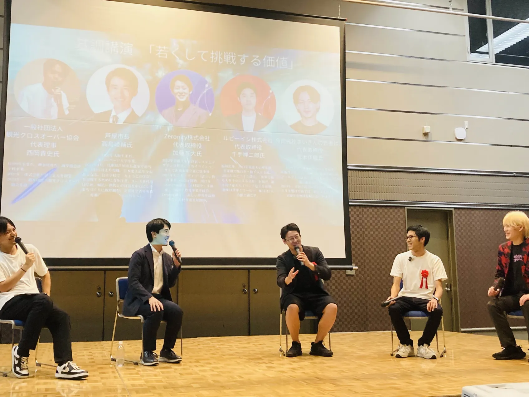基調講演「若くして挑戦する価値」では、髙島崚輔(芦屋市市長)、宮本伊織(合同会社さいきんの若者は、代表取締役)、千手禅二郎(株式会社ルビーイン代表取締役)らが登壇しました。