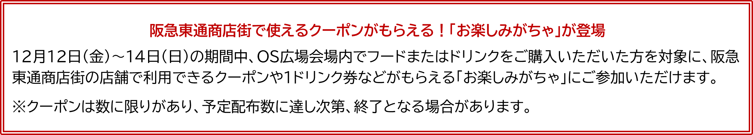 今年は、こうした取り組みをさらに発展させ、「OS広場」で食と音楽を楽しめるクリスマスマーケットを初めて実施します。阪急東通商店街の玄関口に位置する広場の特性をいかし、商店街の皆さまと協力しながら、訪れる皆さまが心あたたまるひとときを過ごせる空間をお届けします。ぜひお立ち寄りください。