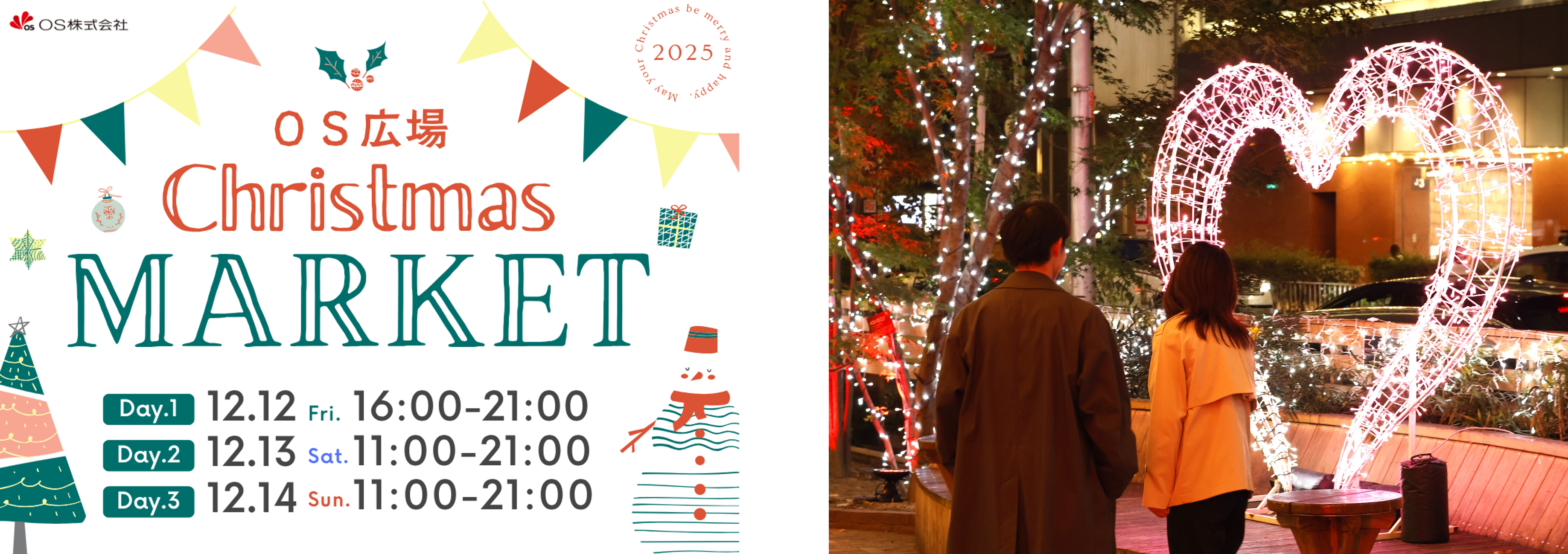 オーエス株式会社(本社︓大阪市北区、代表取締役︓金谷伸雄)は、梅田エリアの冬を彩るイベント「UMEDA MEETS HEART」の開催期間にあわせて、大阪・梅田のOSビル1階に位置する「OS広場」にて、2025年12月12日(金)から14日(日)の三日間、『クリスマスマーケットinOS広場』を開催します。