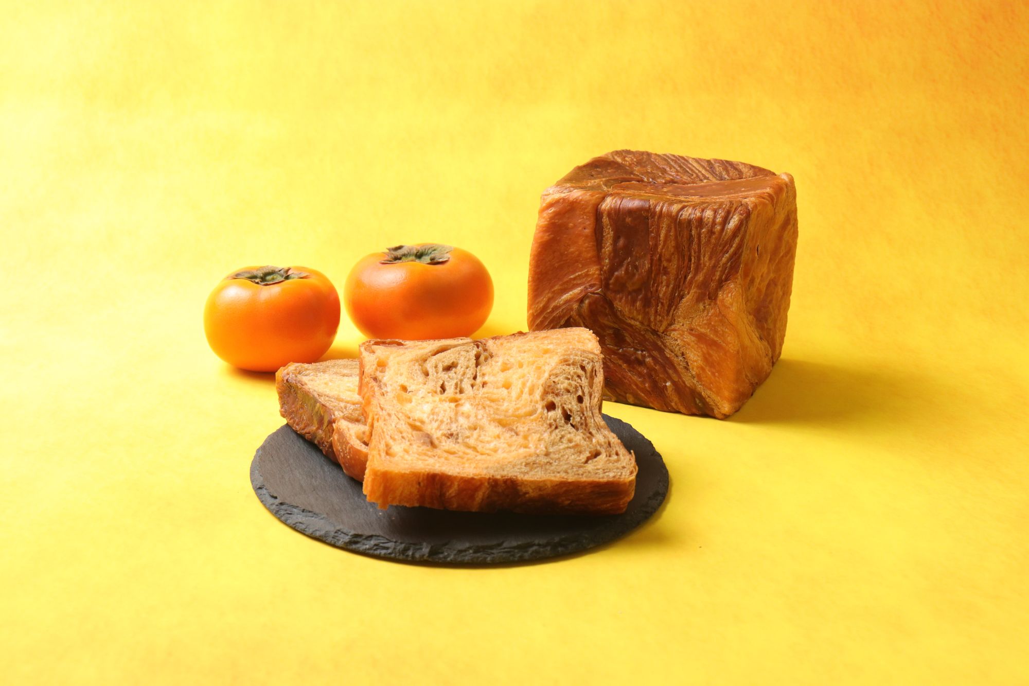 おけさ柿のドライフルーツを合わせた柿生地と、優しい味わいの黒糖生地。この2色のデニッシュ生地をバランスよく合わせました。