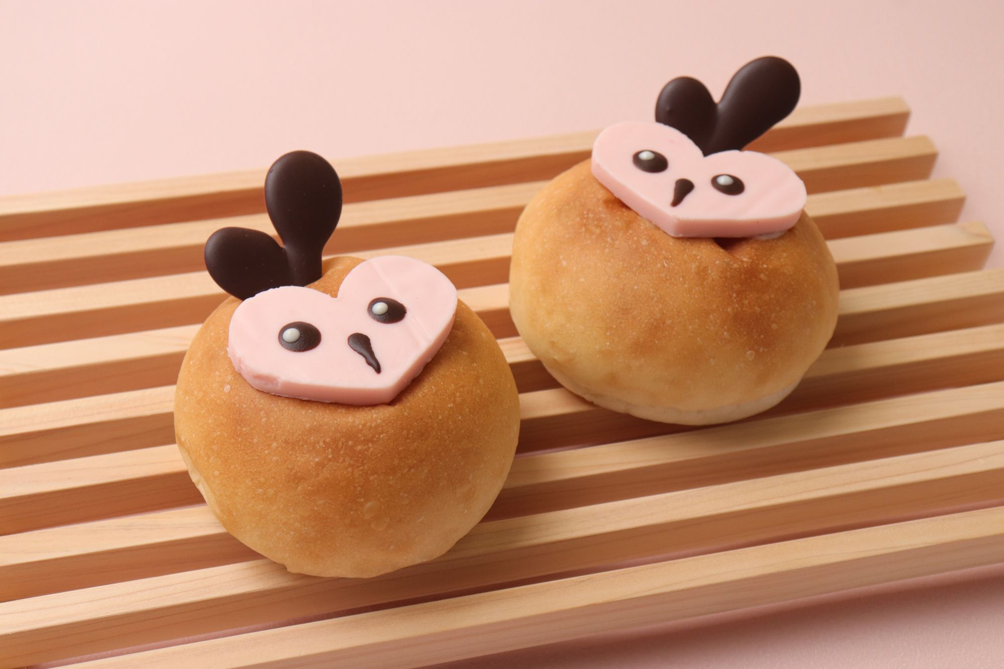 この「トッキッキパン」は、新潟県産の小麦粉と、県産米粉をブレンドしてもっちり生地の丸パンに、新潟のブランドいちご「越後姫」のジャムを入れました。ピンクのチョコで作ったハートを顔に仕上げ、可愛い表情もしっかり再現しています。