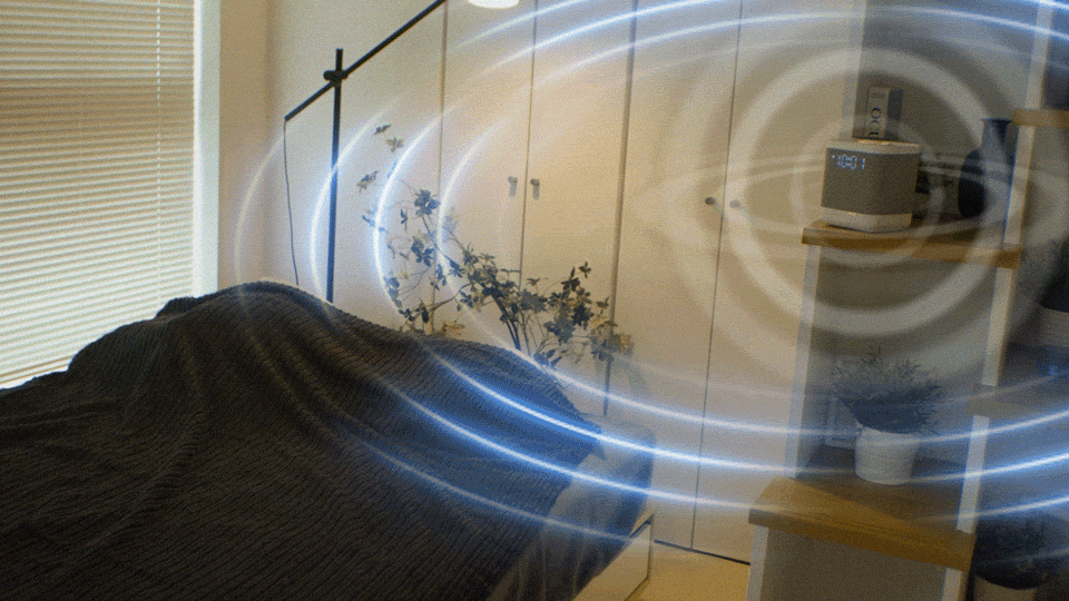 nemcaro は、医学博士および理学博士監修による“眠り専用の音”を特許技術の360°立体音響で再生。一台で音が空間全体に広がり、全身を包み込むような心地よさを生み出します。
