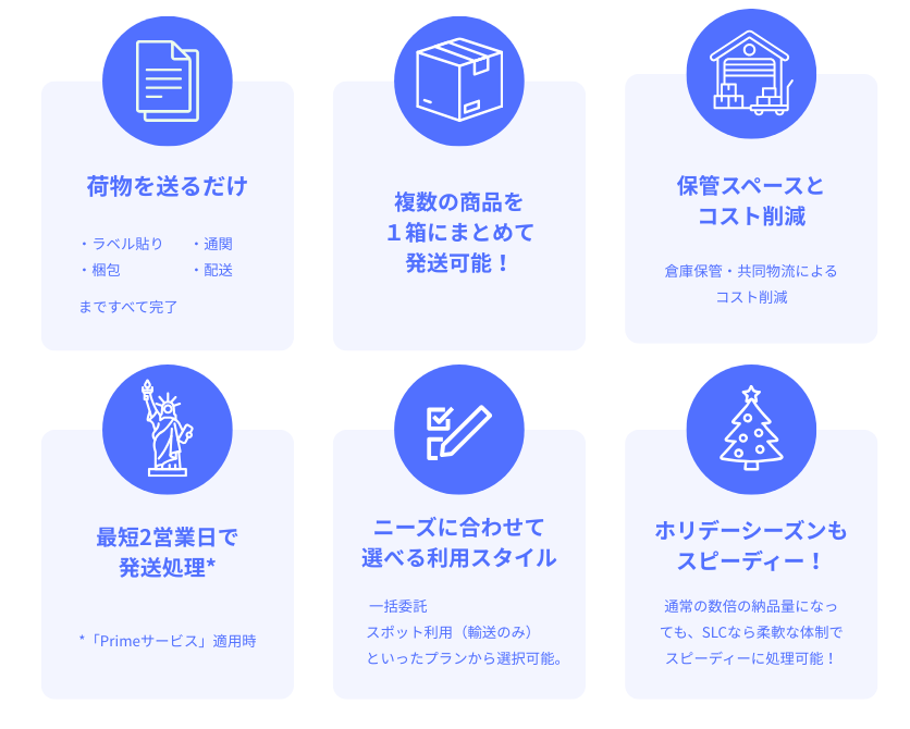 この想いをそのまま形にしたのが、新しいSLCサービスです。Amazon FBA倉庫への納品完了までをワンストップで代行し、初めての方にも、事業としてしっかり輸出に取り組みたい企業にも頼れるパートナーとして機能します。