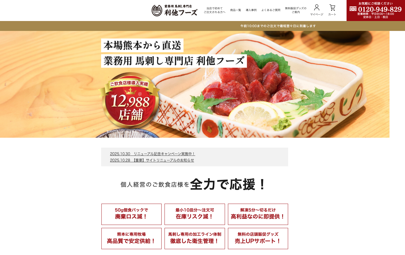 利他フーズ、馬刺し業務用卸サイトを全面リニューアル