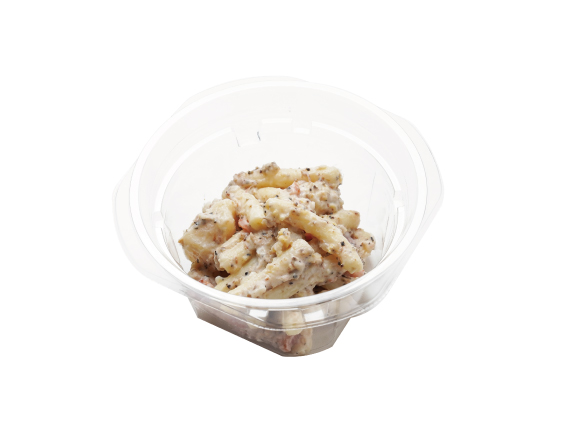 粗挽き胡椒がピリッときいた、クセになるマカロニサラダです。ベーコンとかつお節を混ぜ込んでおり、おつまみにもぴったりな一品です。