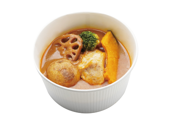 じゃがいもなど4種類の冬野菜と鶏肉をのせた、寒い冬にからだが温まるスープカレーです。スパイシーな香りが食欲をそそります。