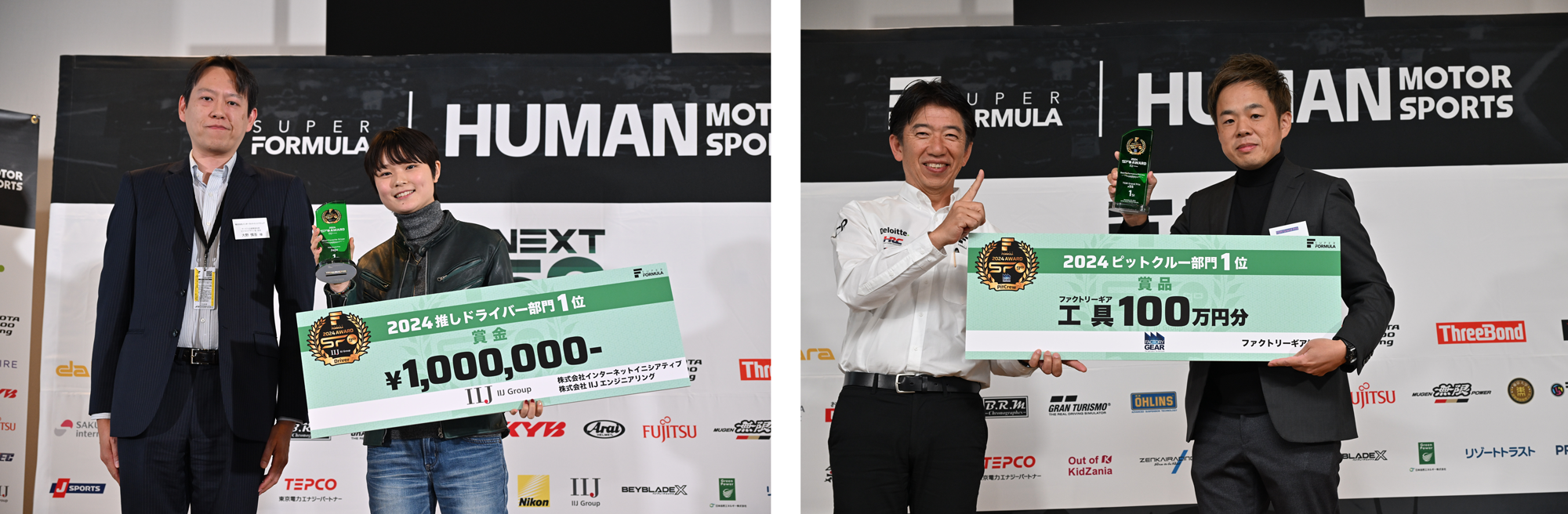 国内最⾼峰で最速の⾃動⾞レースシリーズである全⽇本スーパーフォーミュラ選⼿権(以下「SUPER FORMULA」)を運営する株式会社⽇本レースプロモーション(以下「JRP」)は、シーズン終了後の発表が恒例となりました、ファン投票で決定するNo.1「推しドライバー」部⾨、No.1「推しチーム」部⾨およびタイヤ交換タイムで決定するNo.1「ピットクルー」部⾨からなる『IIJ Group SFgo AWARD』の各部⾨協賛を発表いたしました。