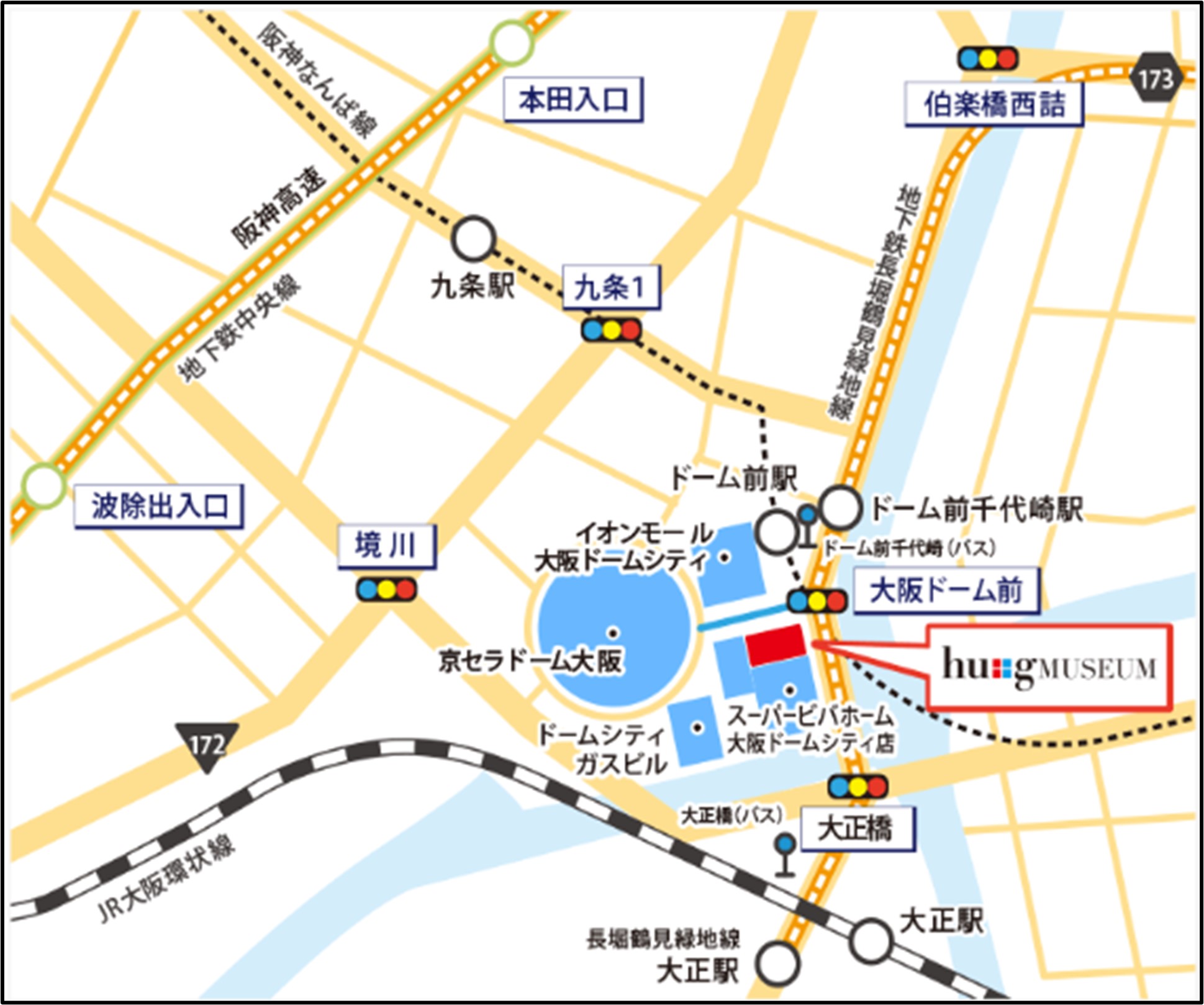 ・Osaka Metro 長堀鶴見緑地線 「ドーム前千代崎」駅下車 1番出口 徒歩3 分