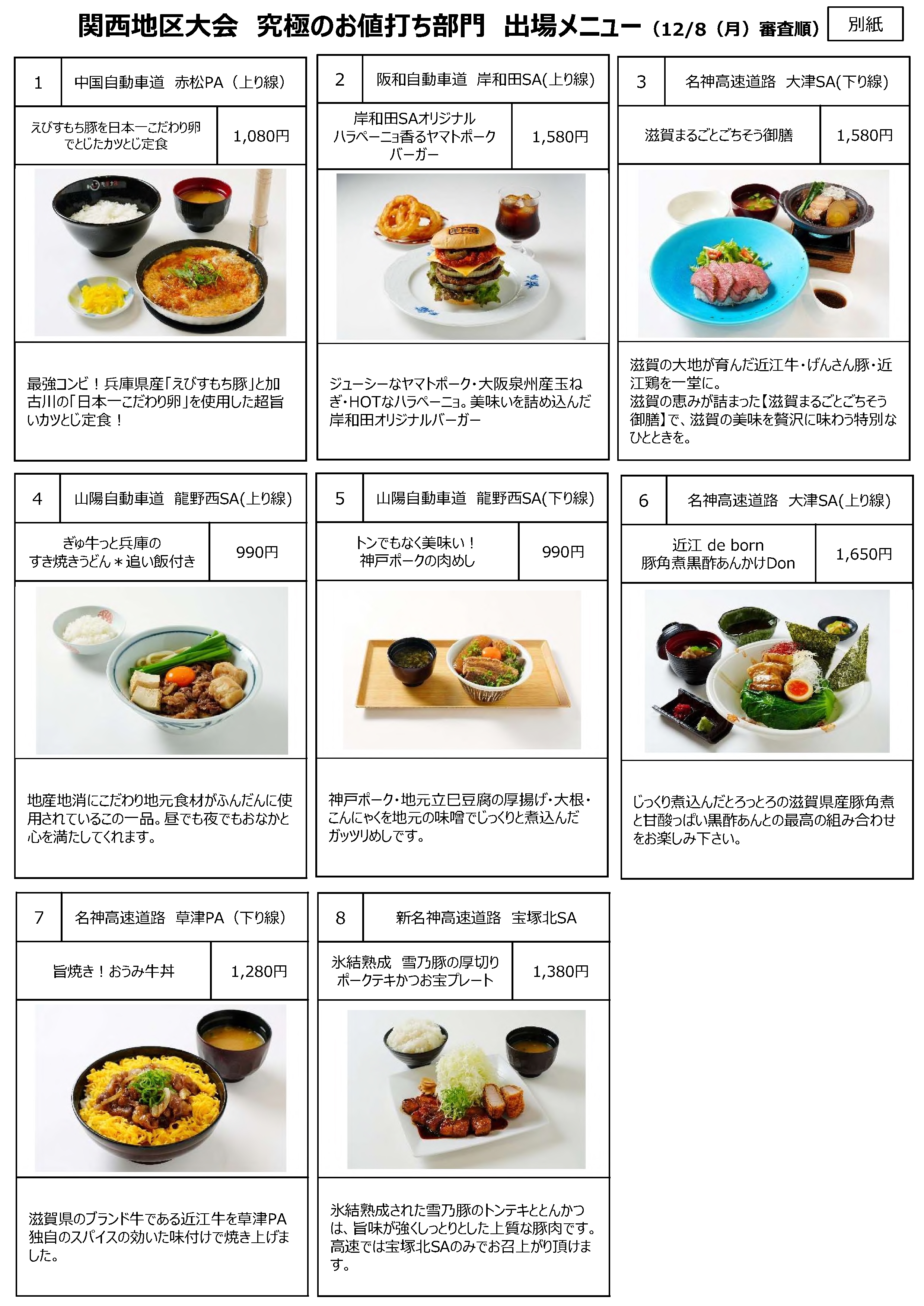 ・西日本のSA・PA を舞台に、平成22年度から開催している、テーマに沿った新メニューのNo.1 を決める大会です。