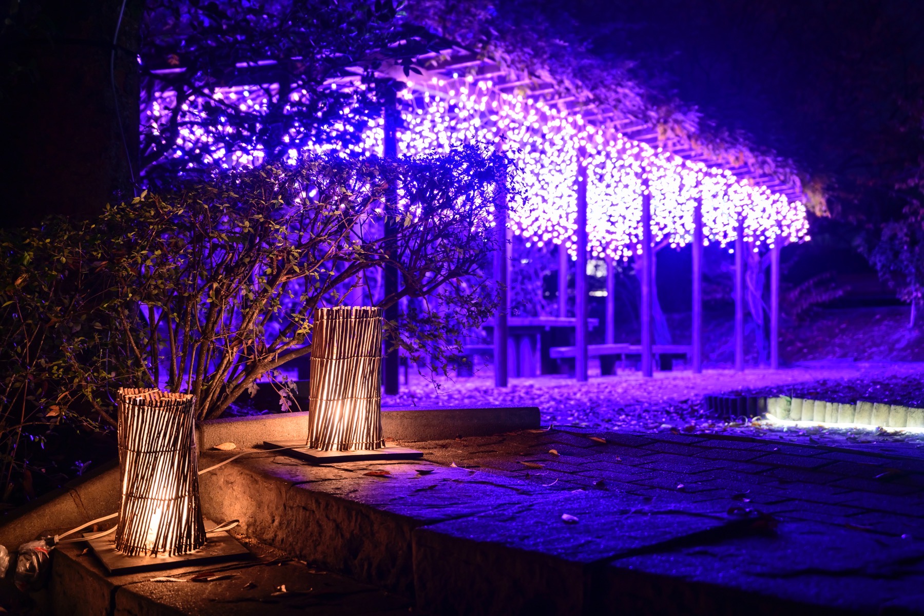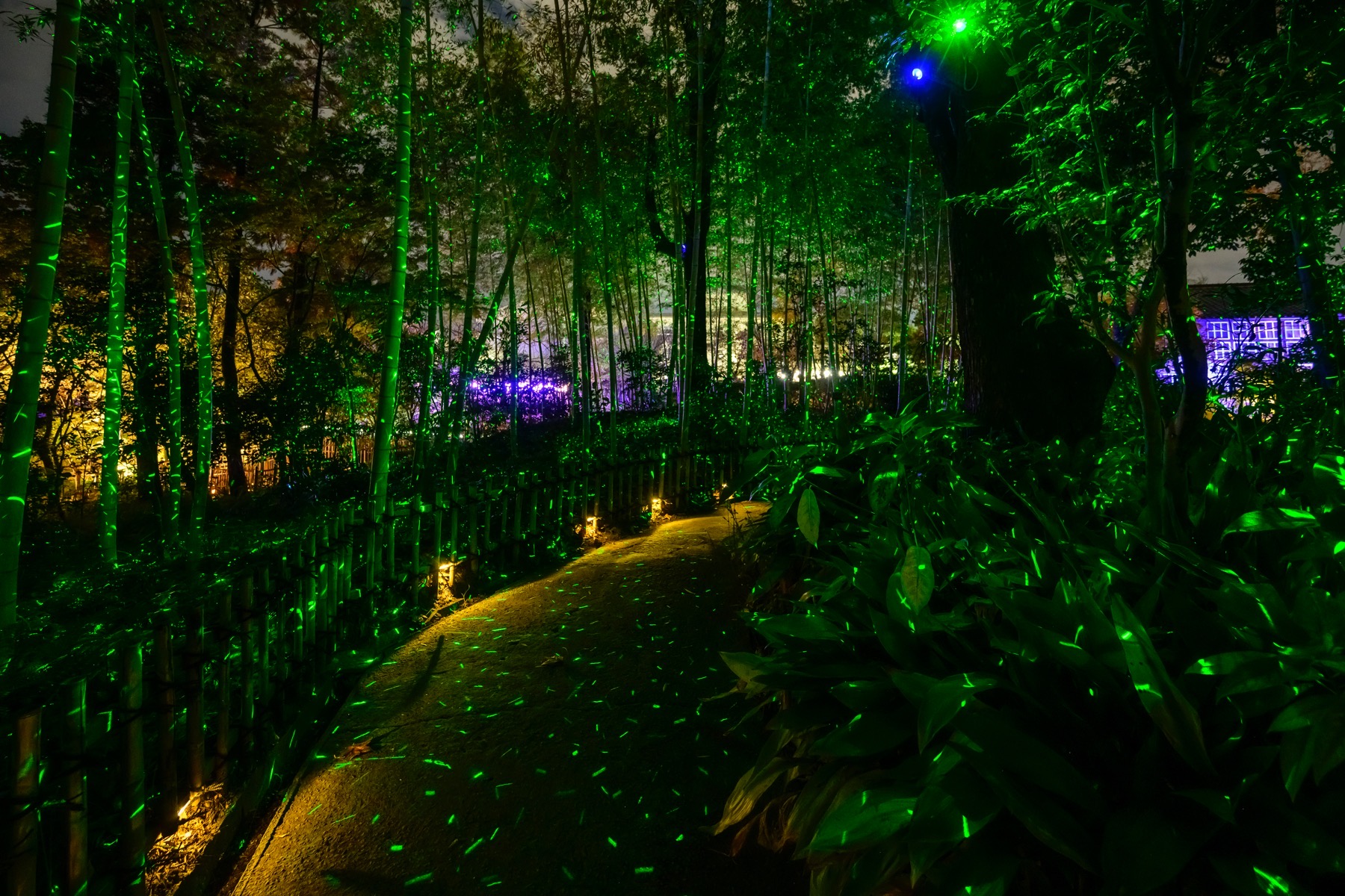 「光がもたらす楽しみと幸福~Pleasure & Happiness of Lights~」をコンセプトに様々な光の演出を行います。同施設の魅力ある資源を活用して生み出される演出は、西洋式庭園と日本庭園で同時に繰り出される光と音のショーをはじめ、西日本初の取り組みです。