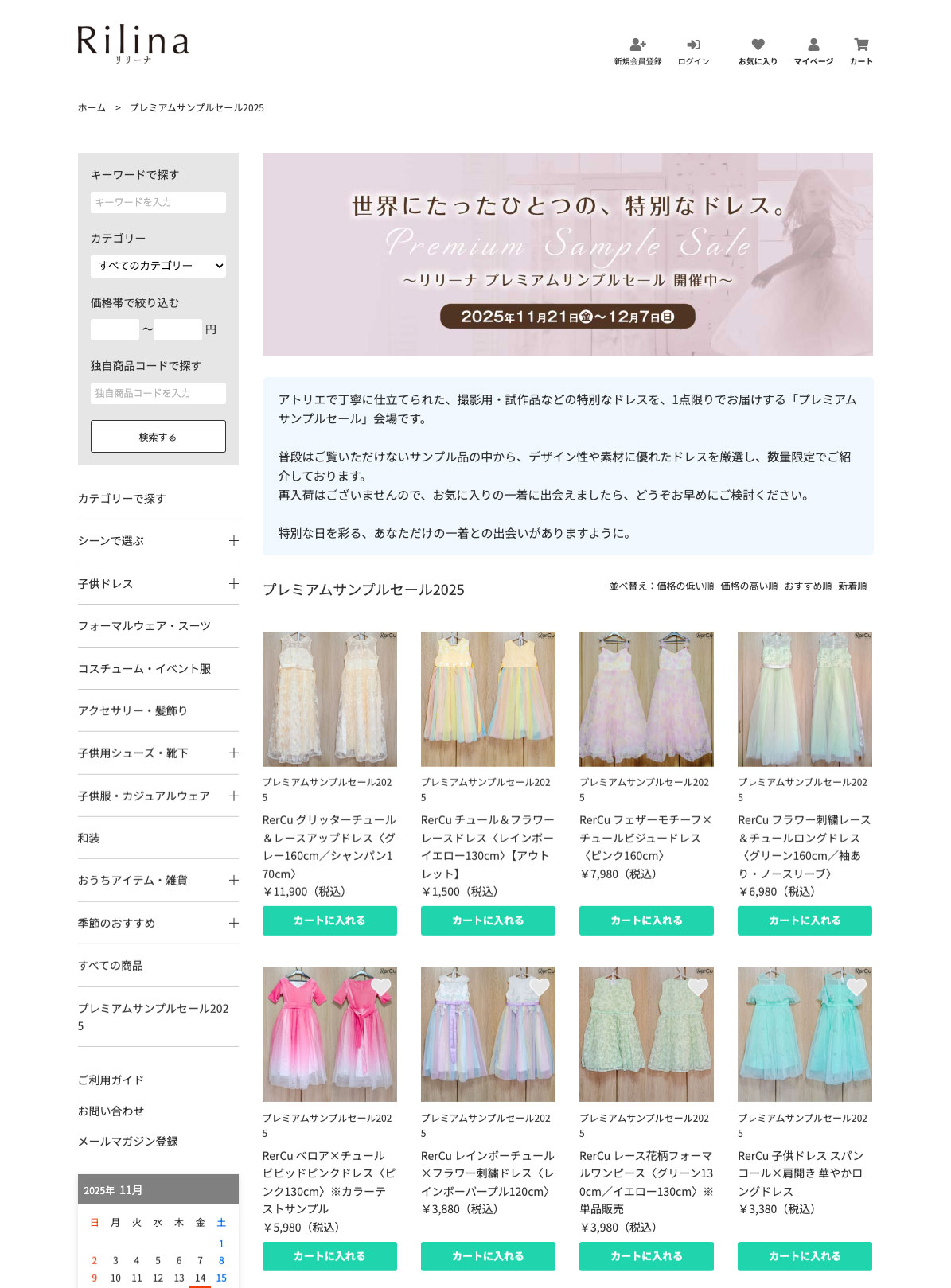 株式会社V&V(本社:福岡県北九州市、代表取締役:吉永 強)は、同社が展開する子ども用フォーマルブランド「RerCu(レアキュー)」より、アトリエで制作された試作・撮影用ドレスを一点ものとして販売する「プレミアムサンプルセール」を、公式通販サイト「Rilina(リリーナ)」にて2025年11月21日(金)より開催いたします。販売される商品はすべて一点限りの限定品で、“特別な一着”との出会いをお楽しみいただける企画です。