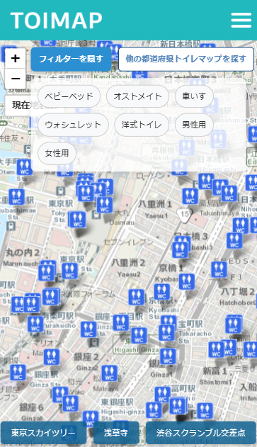 調査基盤: トイレ検索サービス「TOIMAP」(保有データ2万ヶ所以上)