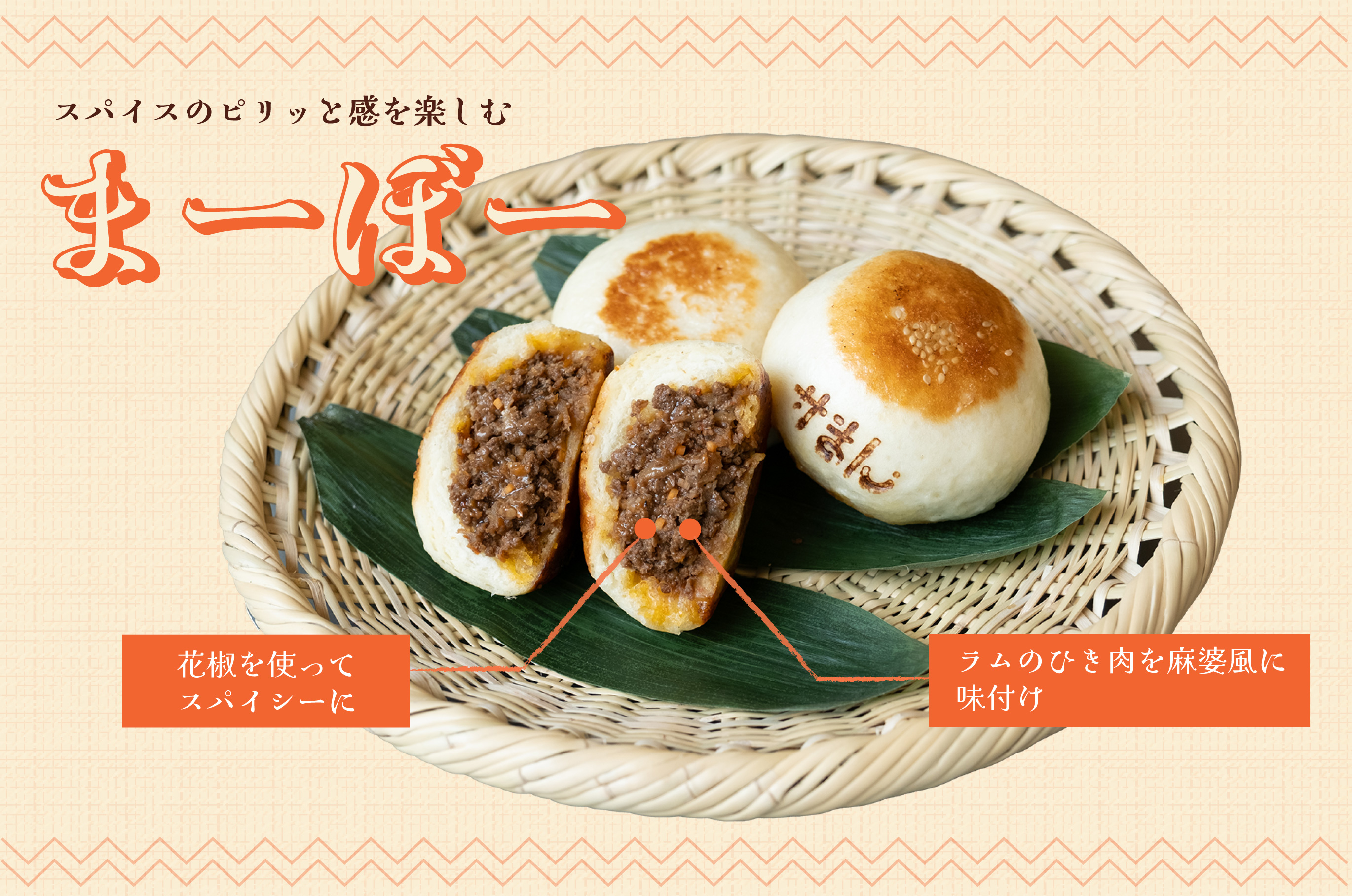 この着想から、サウナで失われた塩分とスパイスを補給できる「チャージ飯」として、具材には伝統的な野沢菜などの野菜ではなく、台湾の定番料理「魯肉(るーろー)」と、低カロリーなラム肉を使った「麻婆(まーぼー)」を採用。生地も、サウナ後の乾いた口でも食べやすいよう、水分量を多くした「ふっくら・もっちり」な食感を追求しました。