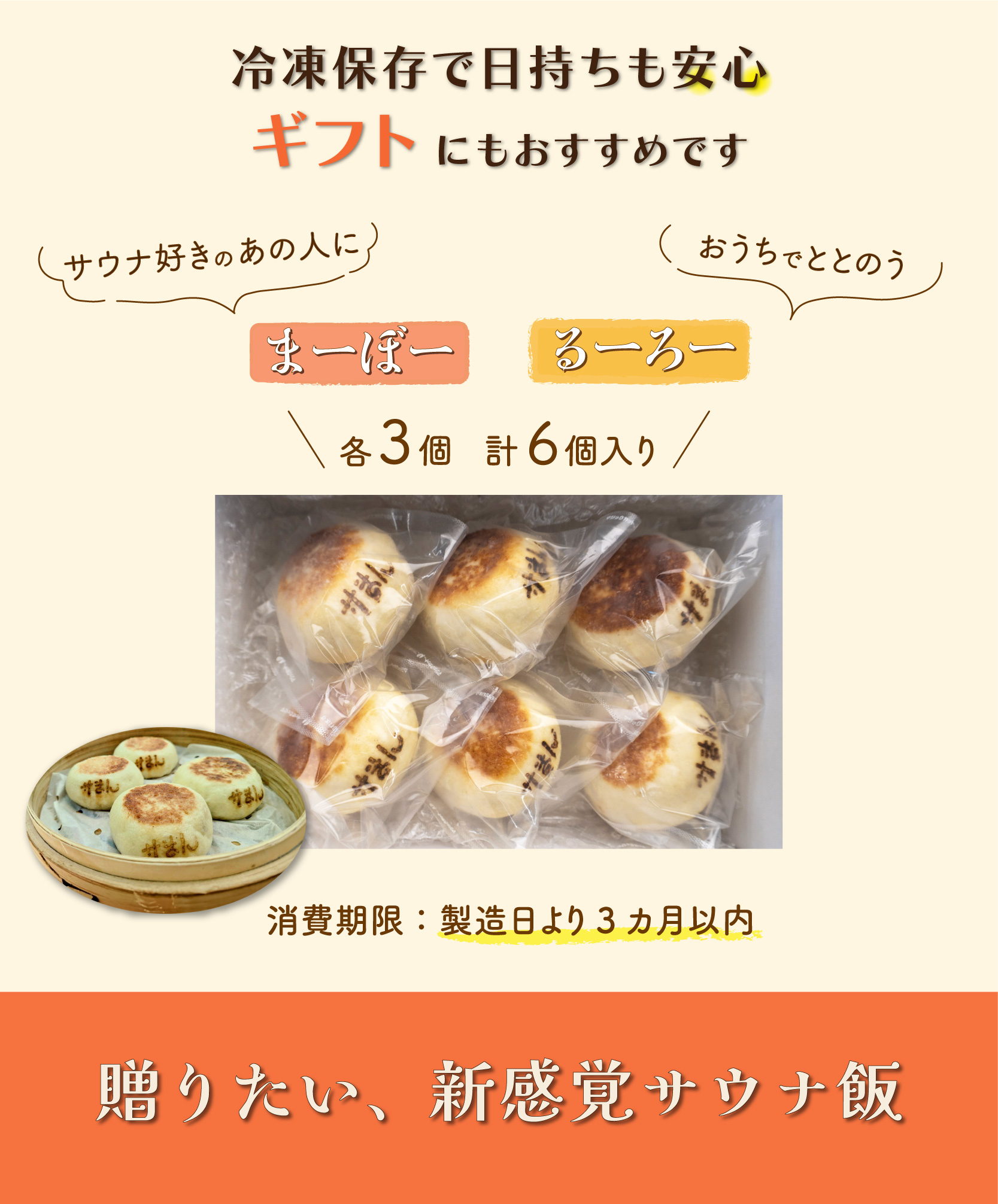 【おうちでサまん 6個セット(るーろー×3、まーぼー×3)】