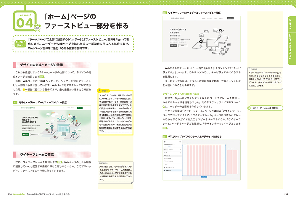 本書は、WebやUIのデザイナー、ディレクター、エンジニア、これらの職種を志望する方々など、Figmaを使う多くの方に最適な内容になっています。改訂にあたって、「バリアブル」や新機能が追加された「オートレイアウト」の解説を加えるなど、内容の多くを刷新しました。全6章構成で、Lesson1・2では、基礎的な知識や画面の見方を習得していただきます。