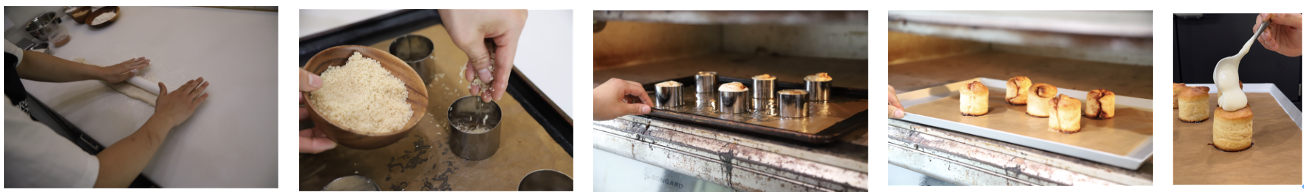 卵・牛乳・バターなどの動物性食材、乳化剤・保存料・増粘多糖類といった食品添加物を一切使用せず、有機栽培をはじめとしたナチュラルな植物性食材のみを厳選。「コムギ縞萎縮病」に対しても強い耐性を持つため、環境負荷が高い土壌消毒への依存を回避できるサステナブルな選択として国産小麦「ゆめちから」を採用し、独自に編み出した発酵時間調整や生地成形方法でふんわり・もっちりとした食感を実現しています。また、約3,000坪の緑豊かな敷地内で採れた花酵母でゆっくりと発酵させています。天然酵母ならではの旨味とコクを感じる生地の底は、粗糖でキャラメリゼし、カリっと香ばしく仕上げました。