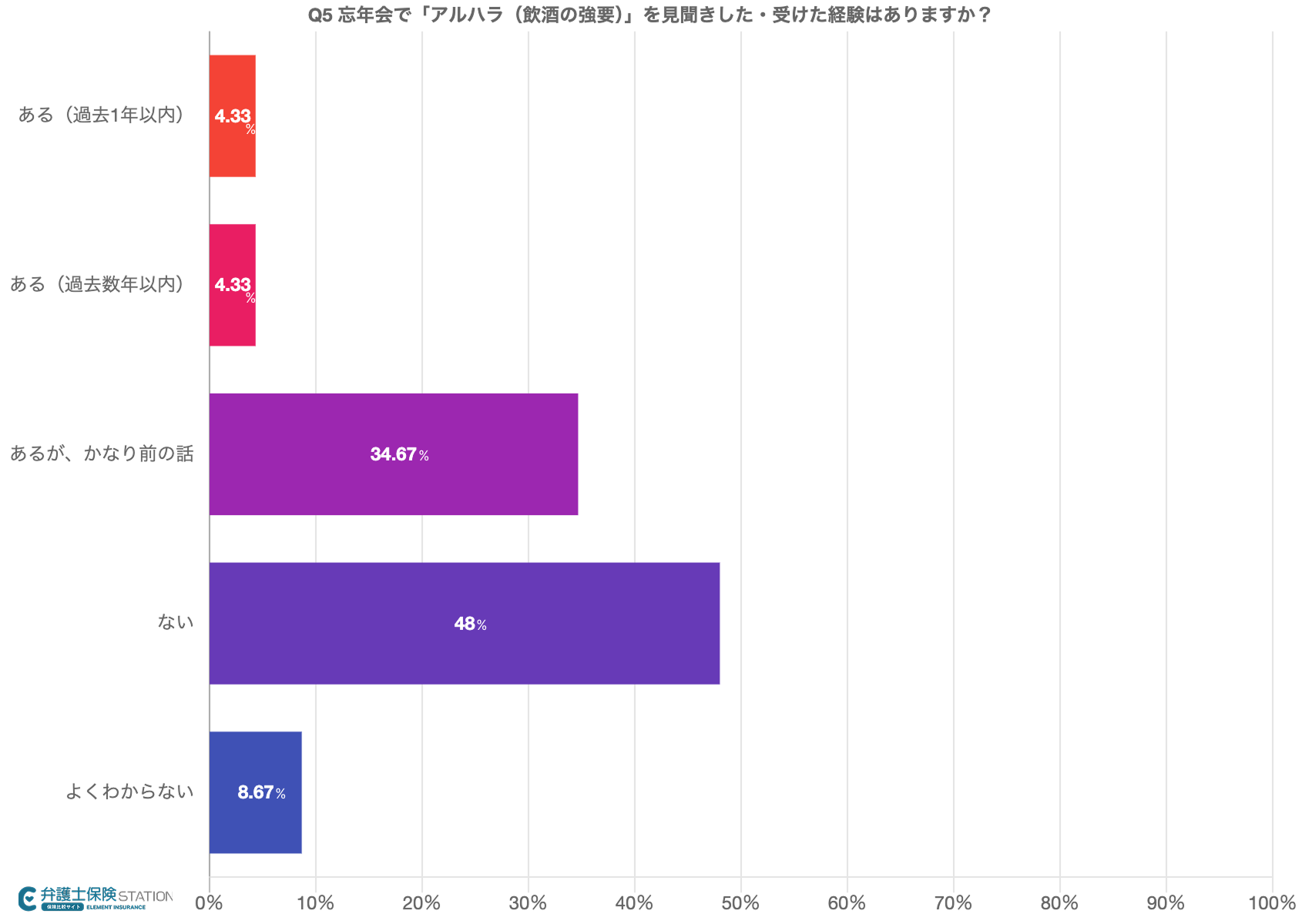 ■忘年会で「アルハラ(飲酒の強要)」を見聞きした・受けた経験はありますか?
