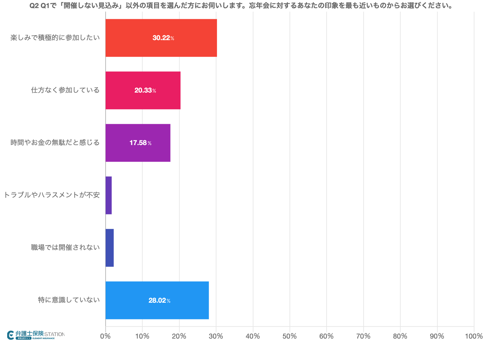 「楽しみで積極的に参加したい」約30.2%、「仕方なく参加している」約20.3%、「時間やお金の無駄だと感じる」約17.6%で、肯定的回答は約3割にとどまりました。