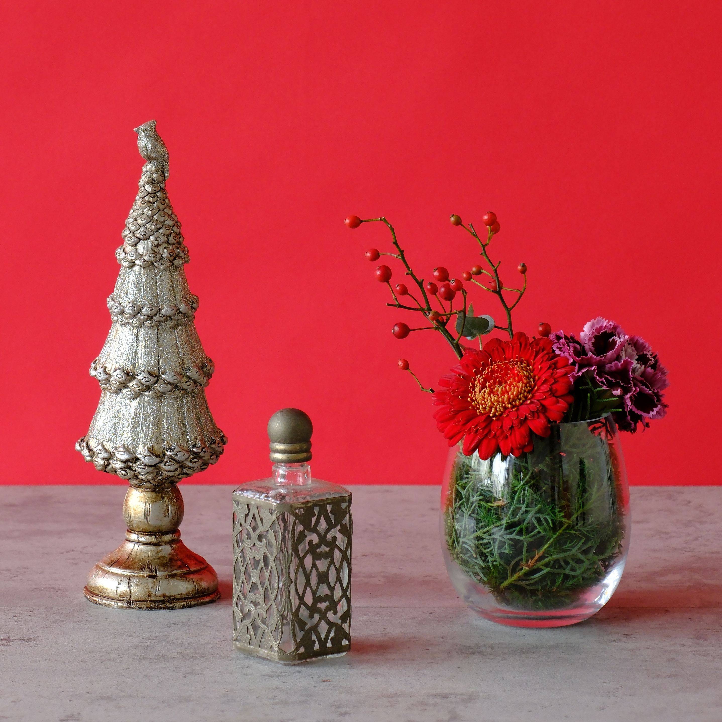 ショップおすすめのグリーン&ベリーを器にいけた季節感のあるアレンジメント。器付きなので、そのまま飾ってお楽しみいただけます。