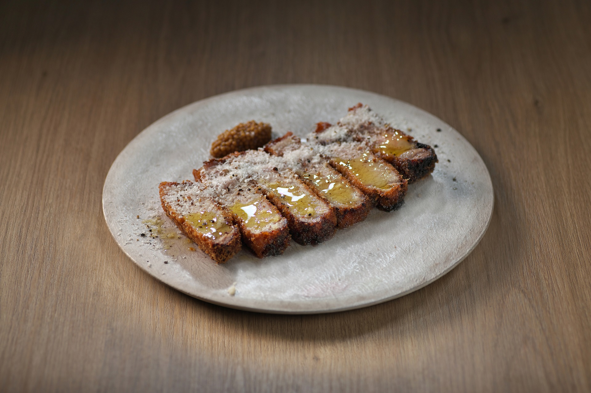 白姫豚リブロースの醤油麹とんかつ オリーブオイルとパルミジャーノで ¥1,980