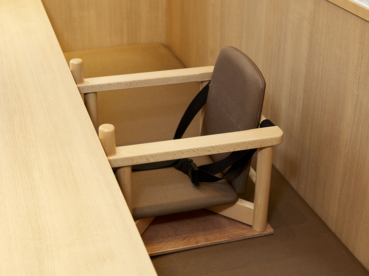 また、フロア席にはベビーカーでそのまま着席できる可動椅子のお席や、お子様用のいすや食器、おむつ替え設備(お手洗い内)もご用意していますので安心してご利用いただけます。