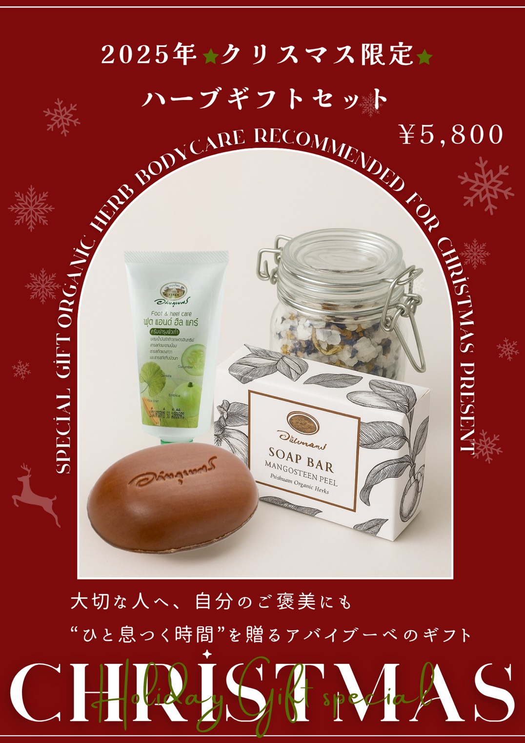 タイ王族によるロイヤルプロジェクトから誕生したプレミアムオーガニックハーブブランド「アバイブーベ」の正規代理店であるアバイブーベジャパン株式会社(本社:東京都港区、代表取締役:川上隆弘、以下:アバイブーベジャパン)が運営する、新宿マルイ本館地下1階の直営店にて、クリスマス限定のハーブギフトセットの販売をスタートしましたので、お