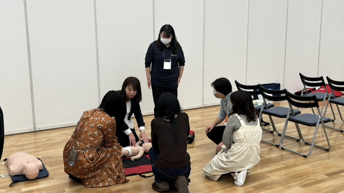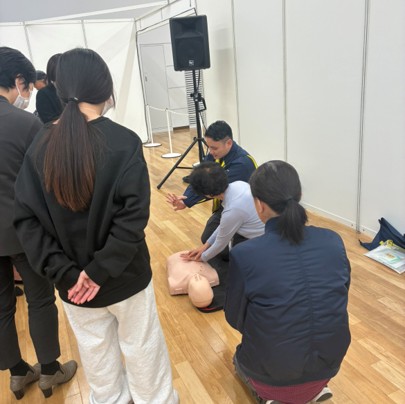 会期中の11月20日(金)には、AHA(アメリカ心臓協会)認定BLSインストラクターの当社社員の鈴木 瞳を講師に無料講習会を実施しました。