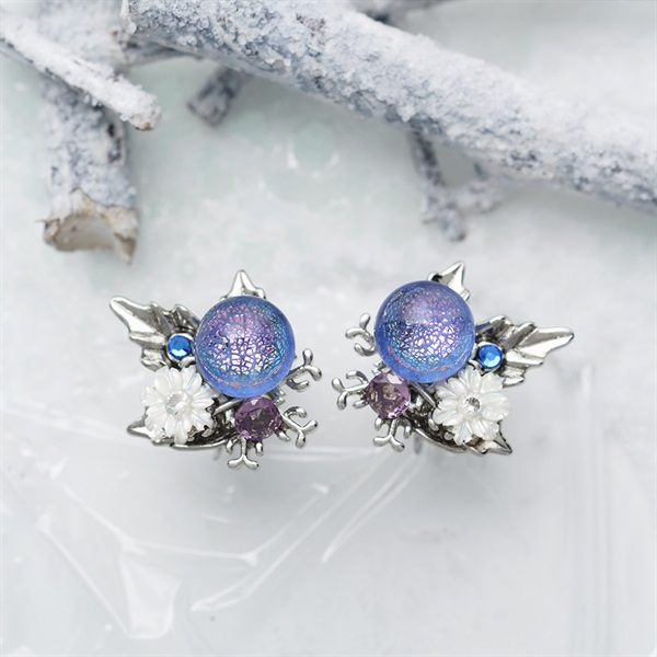 冬の星空・雪の記憶・雪に変わる雨、そんな儚くも幻想的な冬の情景をイメージしたガラスとモチーフを組み合わせて、冬の装いに映える冷たく繊細な輝きを放つデザインに仕上げました。