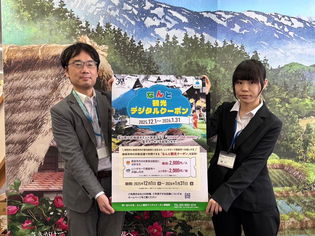 これを機に南砺市では、さらなる観光客の誘致と地域の活性化を図るため、市内宿泊施設に宿泊いただいた皆様、また、レンタカーで南砺市を訪れる皆様を対象に「なんと観光デジタルクーポン」を配布し、市内での宿泊や店舗利用の促進を図ります。これにより、昨今の物価高により影響を受けている事業者を支援することを目的とするものです。
