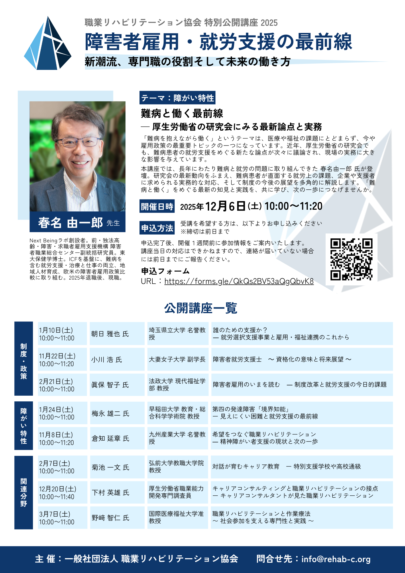 名 称:職業リハビリテーション協会「特別公開講座2025」《第3回》