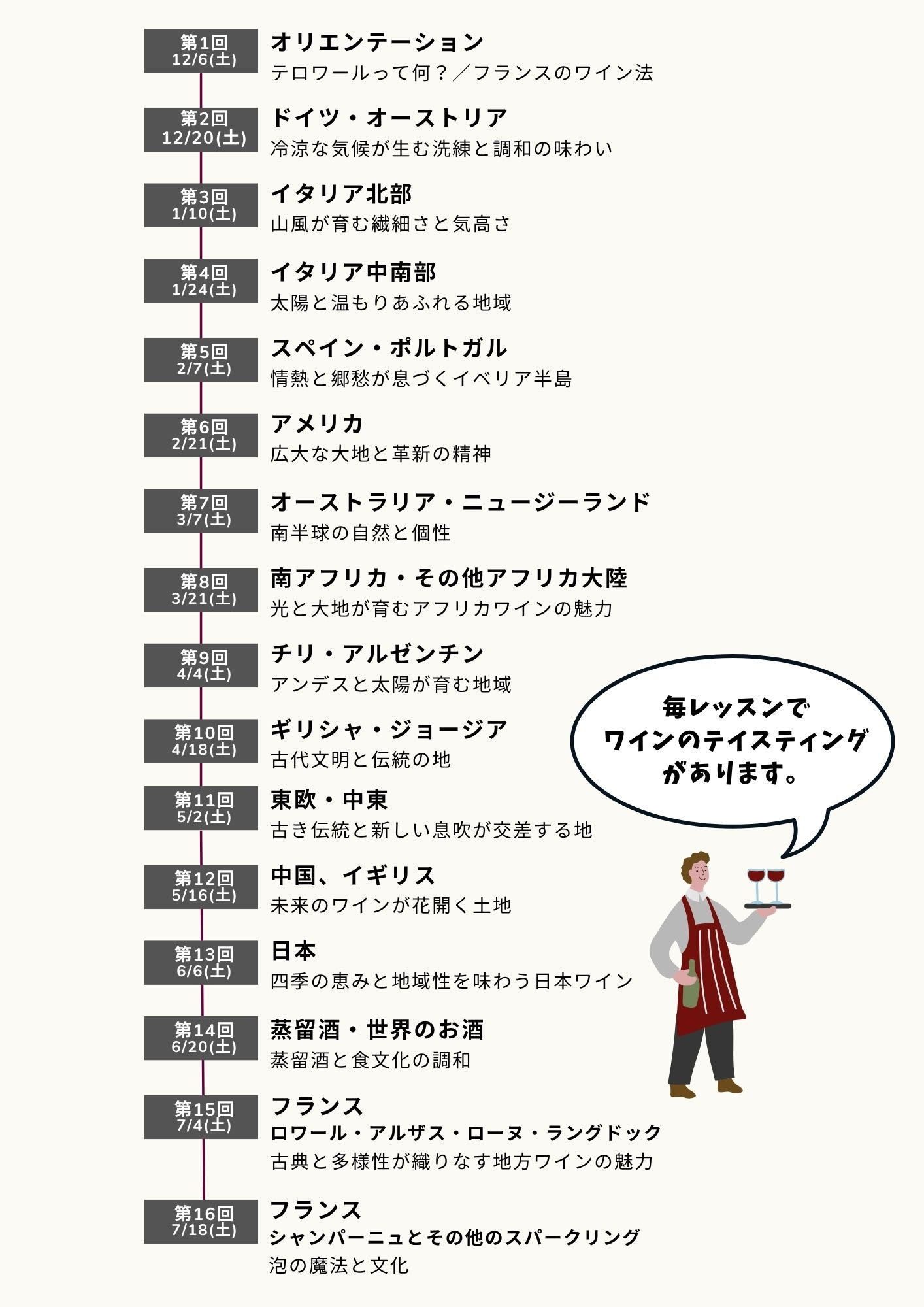 ただ味わいを知るだけでなく、各ワイン生産国の文化に深く触れ、テロワールとは何かを実感できる力を養います。