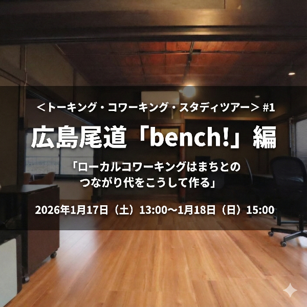 コワーキング協同組合(所在地:兵庫県神戸市、代表理事:伊藤富雄)は、運営する「コワーキングマネージャー養成講座」の実践プログラムとして、<トーキング・コワーキング・スタディツアー> #1 広島尾道「bench!」編を、2026年1月17日(土)〜18日(日)の2日間にわたり開催いたします。 本ツアーは、当組合が企画・制作するYouTubeライブ番組「トーキング・コワーキング」に出演したゲストのコワーキングスペースを実際に訪問し、番組だけでは伝えきれない現場の空気感や運営の実際を学び、参加者同士の交流を深める企画の第1弾です。 (詳細URL: https://www.coworkingmgr.com/studytour01)