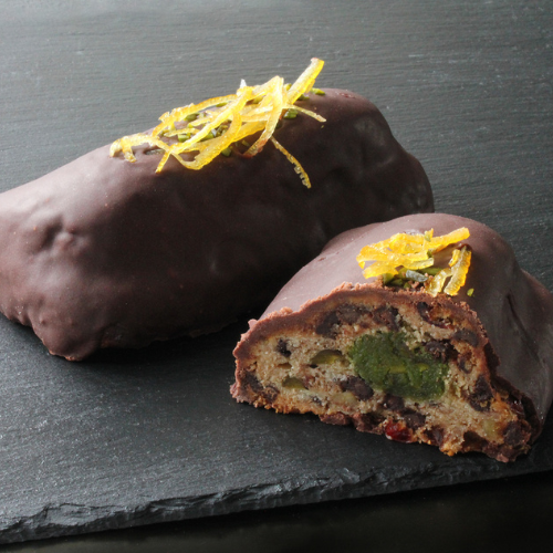 ピスタチオとオレンジがアクセントのチョコレートのシュトーレン