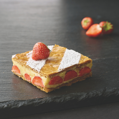 いちごとカスタードクリームを、サクサクのパイ生地でサンドしました