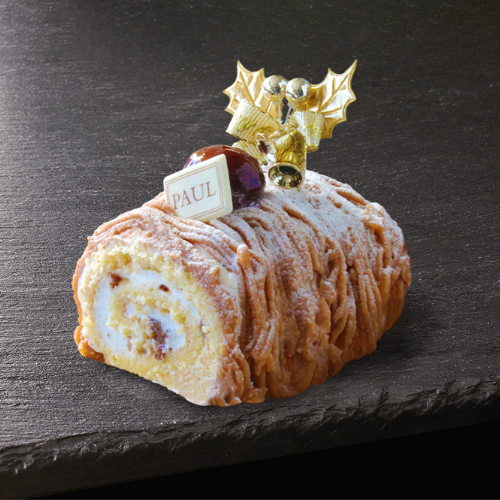 ラム酒漬けの渋皮煮マロンと生クリームを巻き込み、マロンクリームで仕上げたクリスマスケーキ