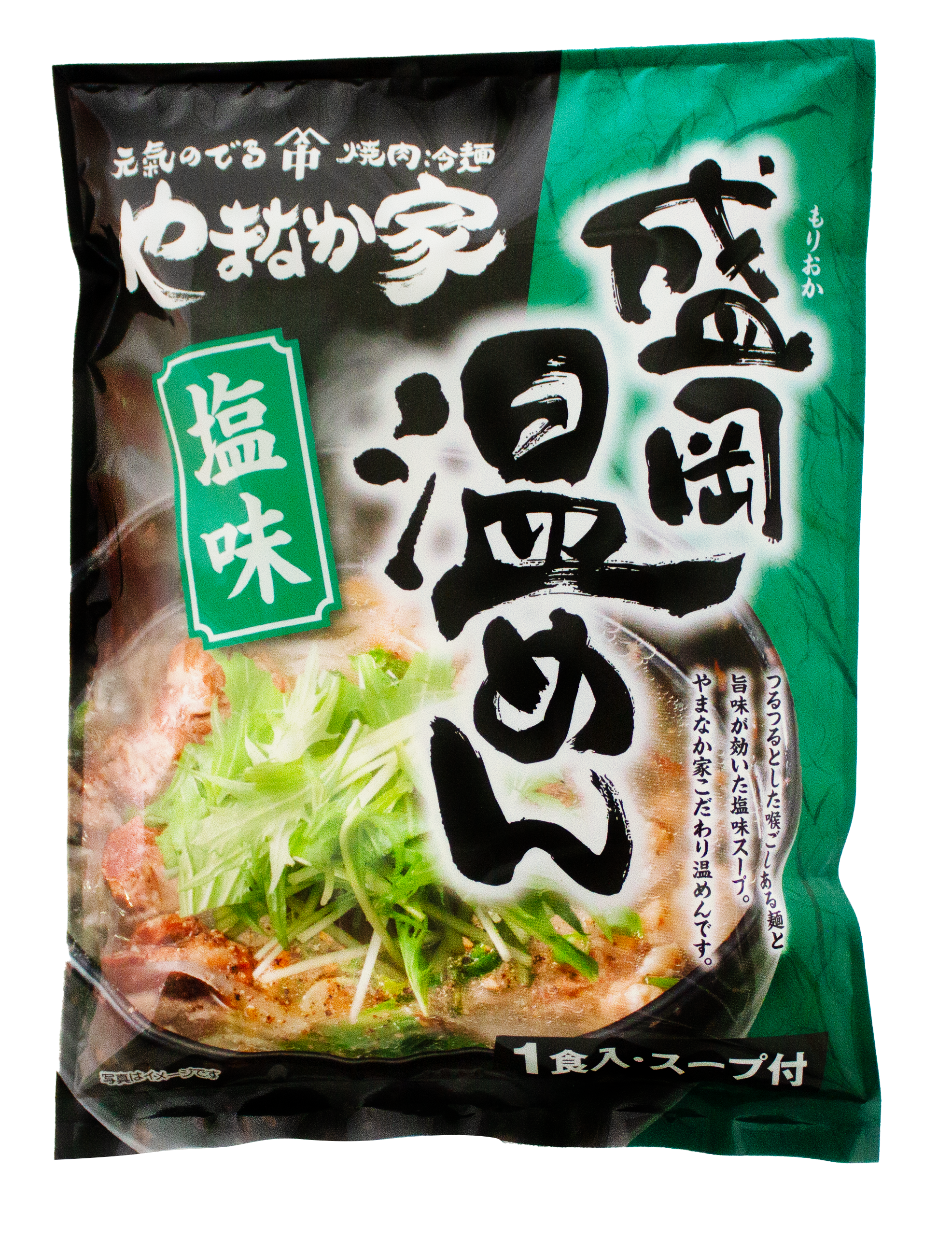 常温タイプの塩味盛岡温めん。スープに旨味が溶け込んだ体にしみわたる一杯。あっさりとしつつもコクのある味わいと、つるりとなめらかな麺の食感が自慢です。