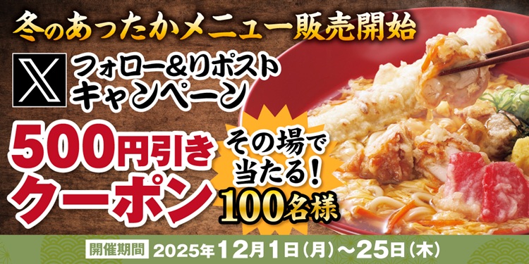 冬ならではのおいしさで心も体もあたたまる!公式Xのフォロー&リポストで100名様に500円引きクーポンが当たるキャンペーンも開催
