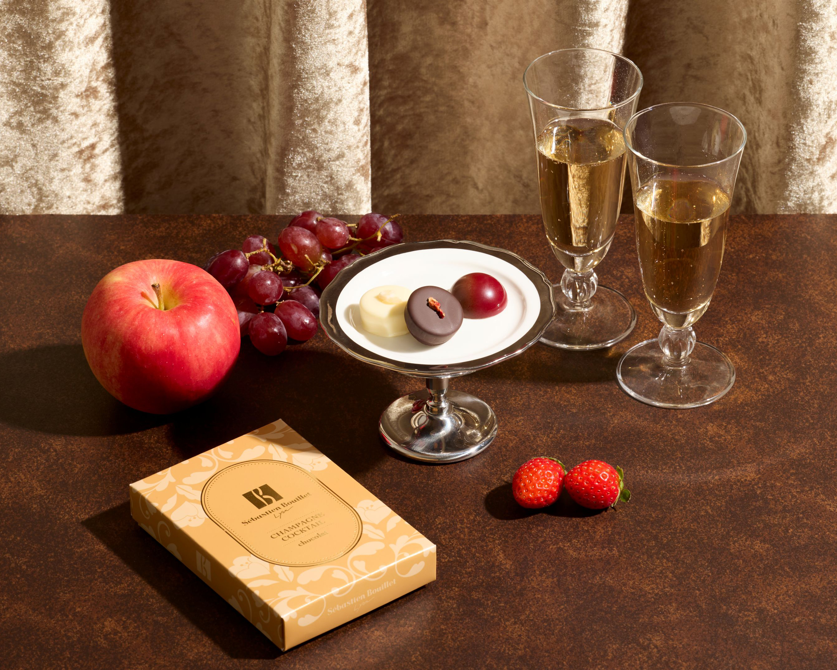 香り高いシャンパンガナッシュに、ストロベリー・グレープ・アップルのフルーティなアクセントを重ね、大人の余韻を楽しめるリュクスな仕上がりにしました。ひと粒ごとに広がる果実の香りと