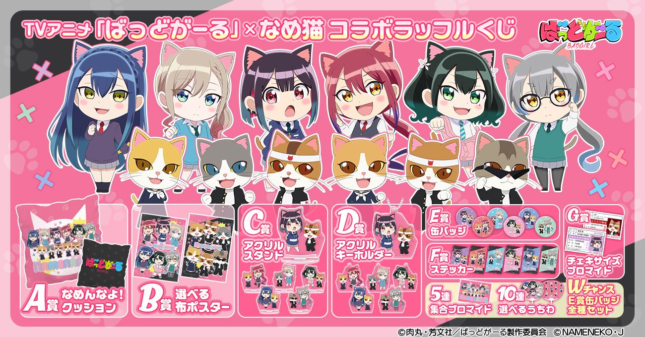 TVアニメ「ばっどがーる」×「なめ猫」コラボラッフルくじが発売決定!〜オリジナルイラストを使用した限定景品が多数登場〜