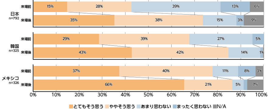 調査対象:2024年度にキッザニア東京・甲子園・福岡、キッザニアソウル、キッザニアサンタフェに団体で来場した小・中学生1,443名 (日本 792名、韓国 325名、メキシコ 326名)