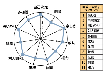 中学生の価値観は「楽しさ」「自己決定」「思いやり」が強い傾向