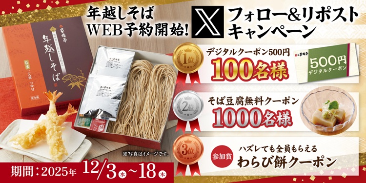 年越しそば販売記念!家族亭公式Xフォロー&リポストキャンペーンも同時開催!