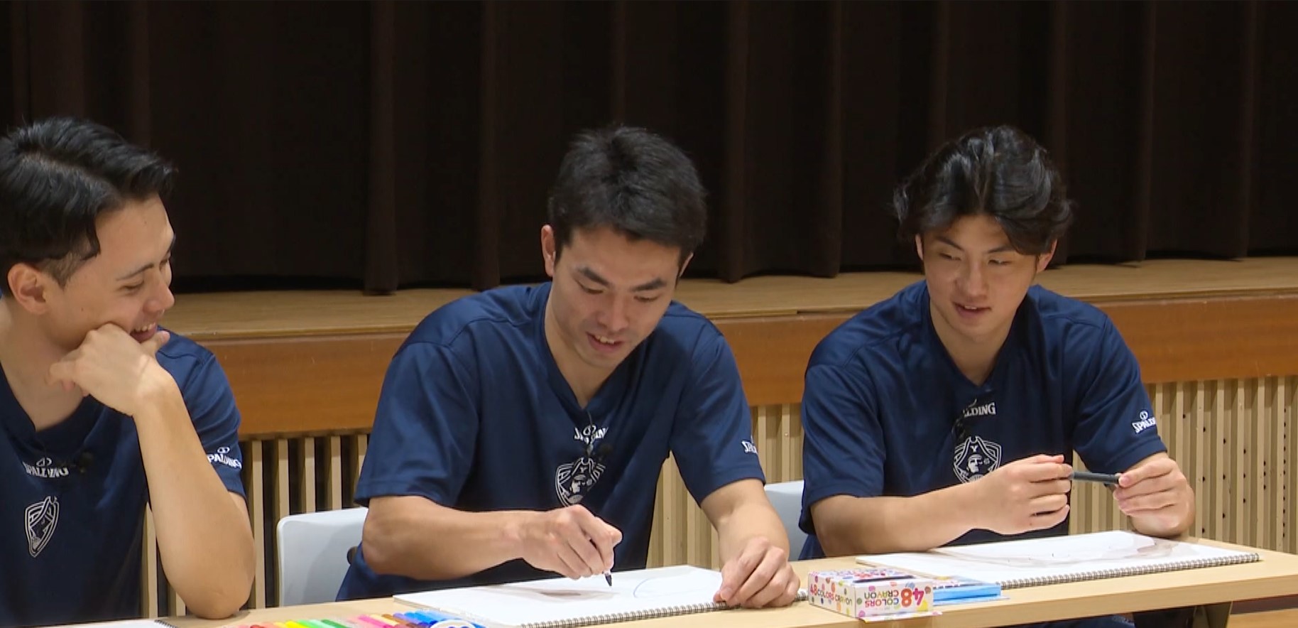 相手チームのフリースロー時にビジョンに映し出される「ブースターディフェンス」として、ゆるコル番組内でビーコル選手とファンが手描きした15作品のうち秀逸な作品を、12月27日のイッツコム冠試合で限定使用します。