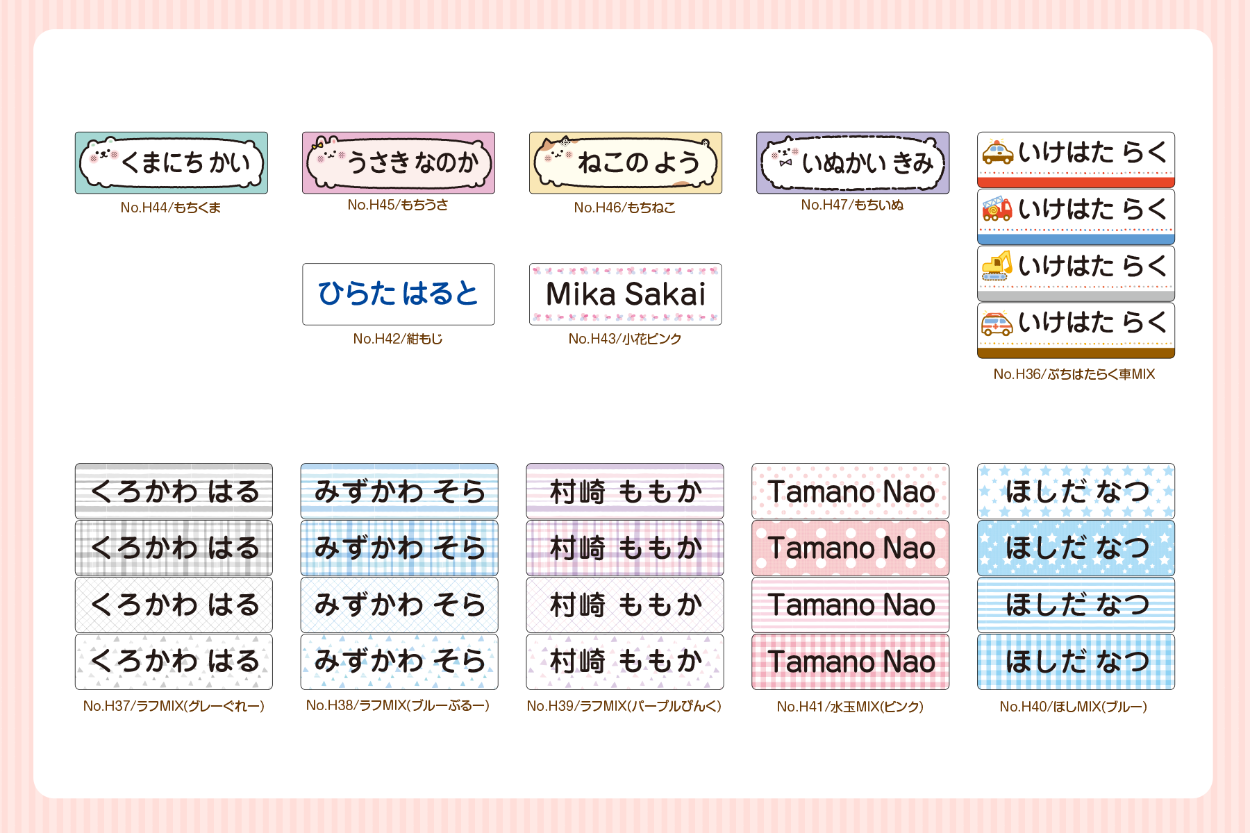 かわいいアニマルフレーム、人気の“はたらく車”シリーズ、背景に模様が入ったパターンMIXなど、12種の新デザインを追加し、全47デザインとなりました。