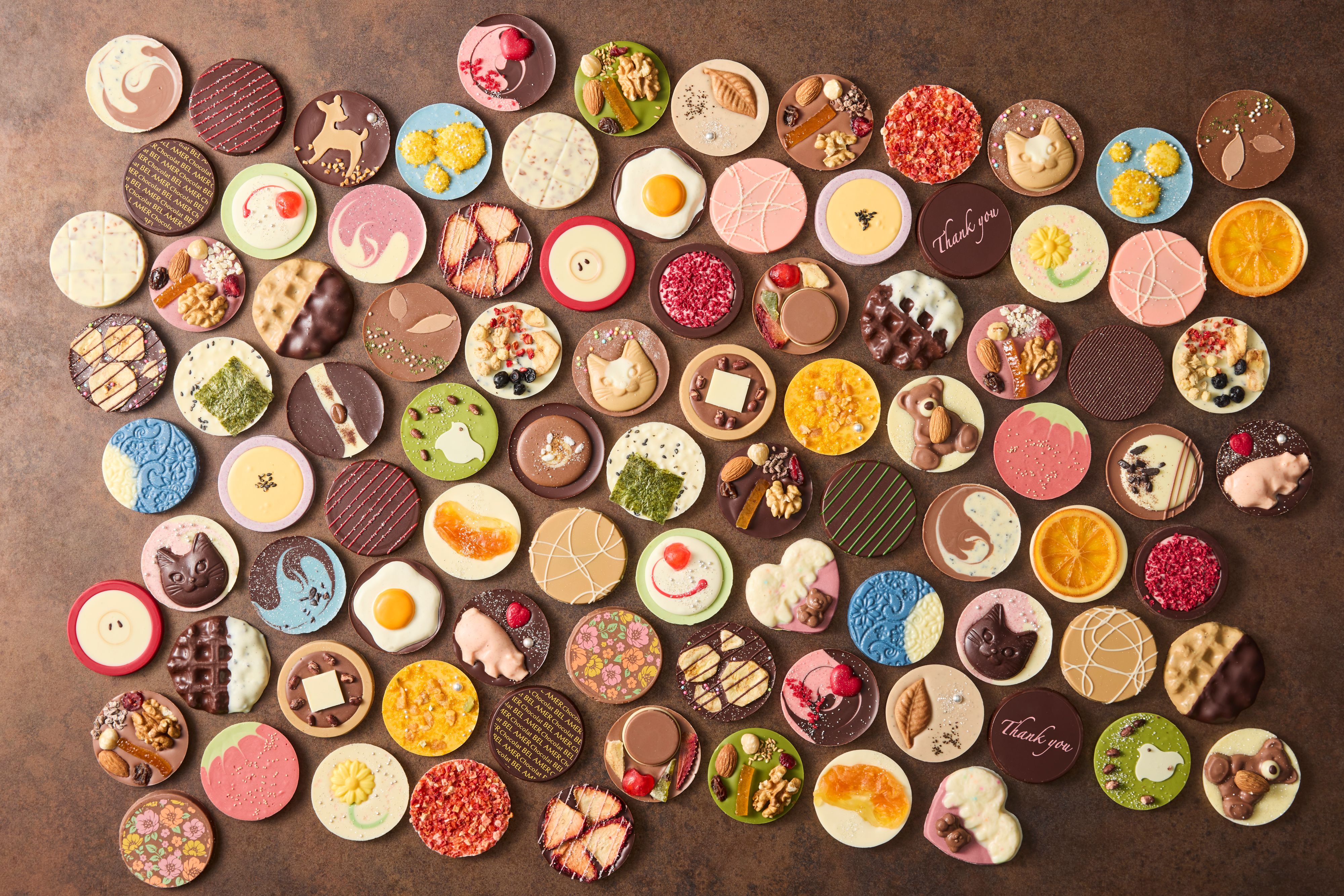 各ショコラは、テーマや素材に合わせてベースのチョコレートを掛け合わせたり、シンプルにオリジナルショコラの風味を活かしたりと、職人のこだわりが詰まった一枚。