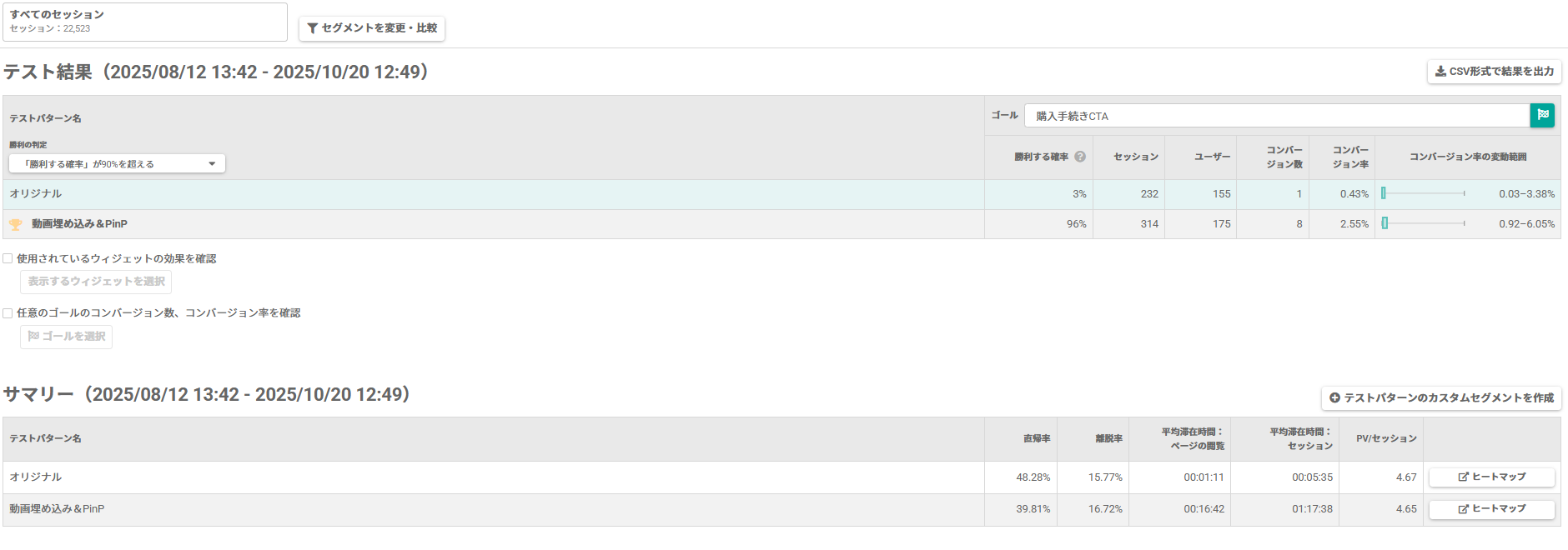 A/B テストもとてもわかりやすく、ユーザーの行動に明らかな変化が現れました。